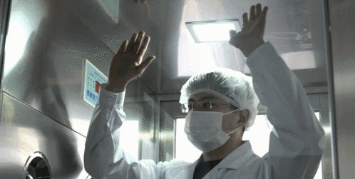 为了保证蔬菜在绝对无菌的环境下生长,每个进入京东工厂的工作人员都要特制防菌服、戴口罩和工作帽,最后还要全身消一次毒才能进去。