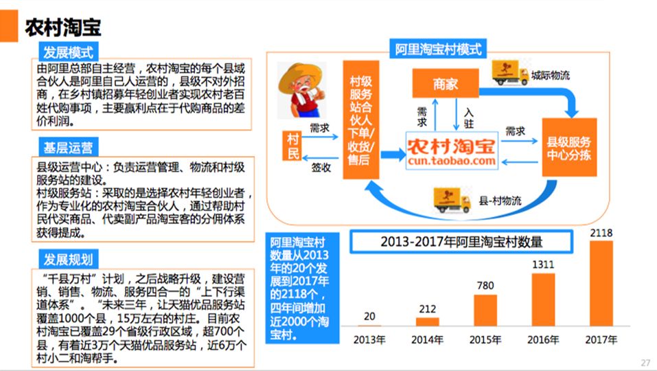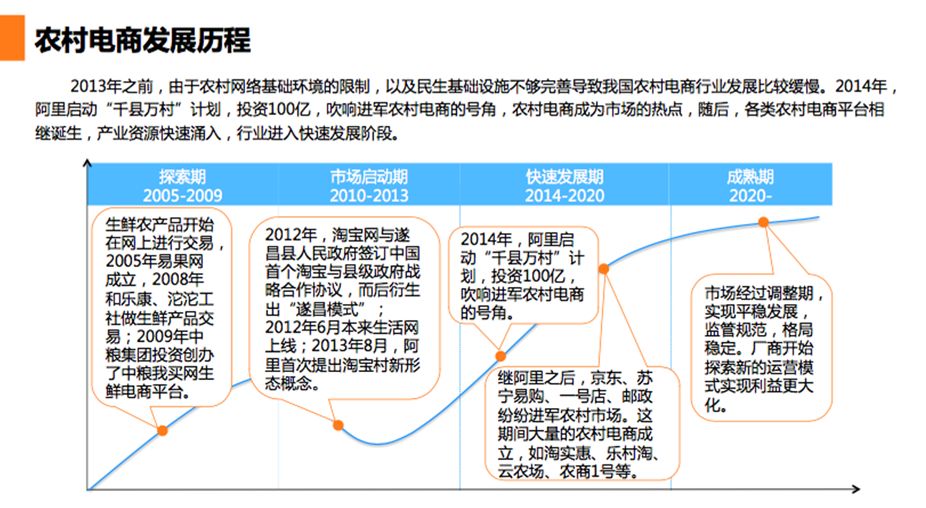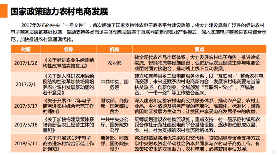 本文从农村电商的业态模式、国内企业布局发展情况以及未来发展趋势进行了深入解读和分析,以下是报告简版。