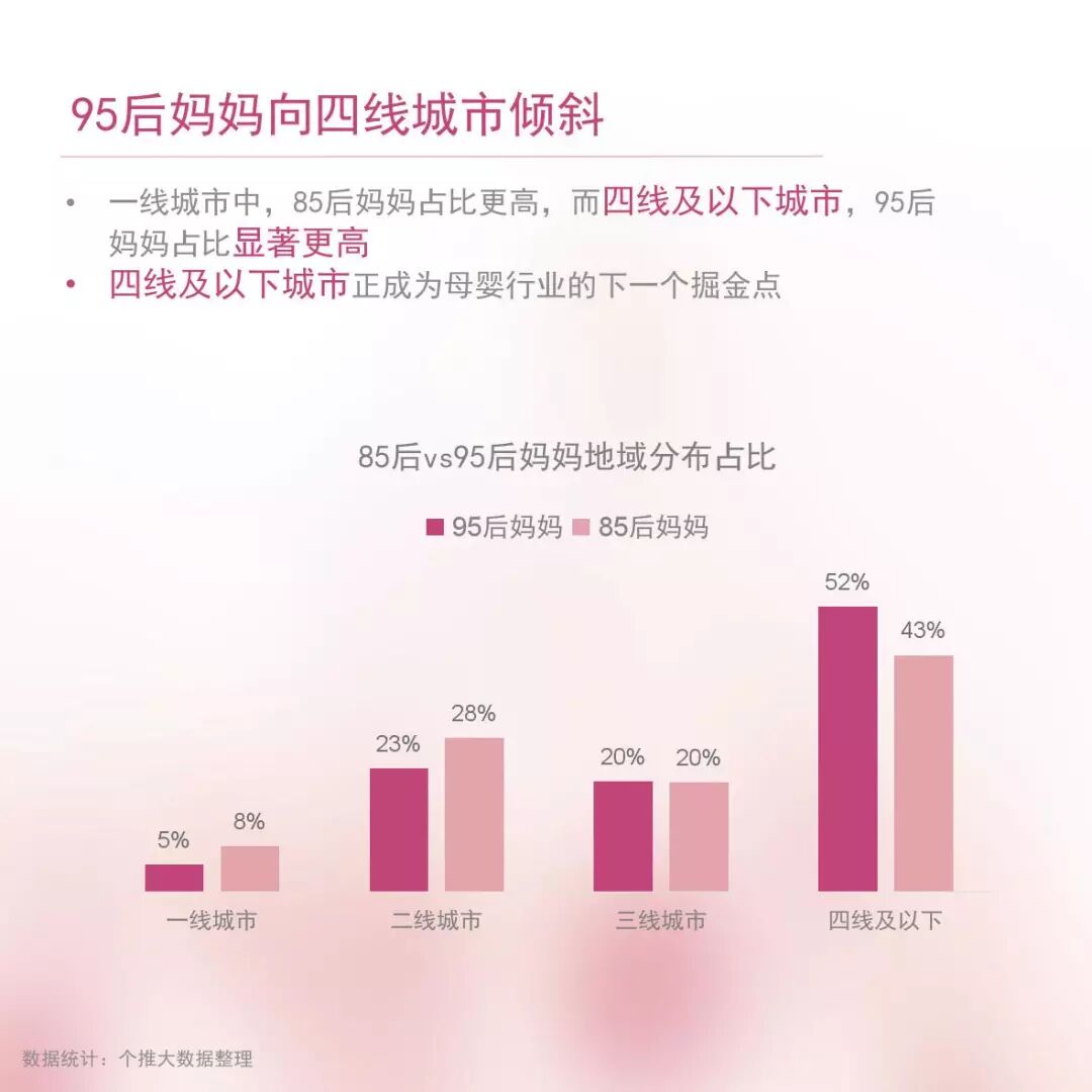 1、95后妈妈人数逐年增加,向小城镇倾斜